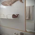 علاوة على ذلك، ستجد مجفف الشعر وملاءات الحمام والمناشف في الحمام.